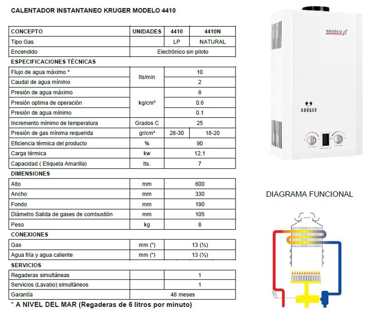 Calentador Boiler Instantáneo 10 Lts Gas LP Krüger